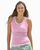 I saw the pictures of this and fell in love, thinking the fabric wouldbe kind of shiny, and the fit snug and cute. Ordered in it purple and olive in large. Although it's not ugly, it just looks very plain,and looks like any plain old colored wife beater you could buy at walmart. Not bad but definitely the pictures were deceptive and they're just so plain, and stretch out and provide an unflattering fit. What a letdown.Get more detail about American Apparel 2x1 Yoga Rib U-Neck Tank Top.
